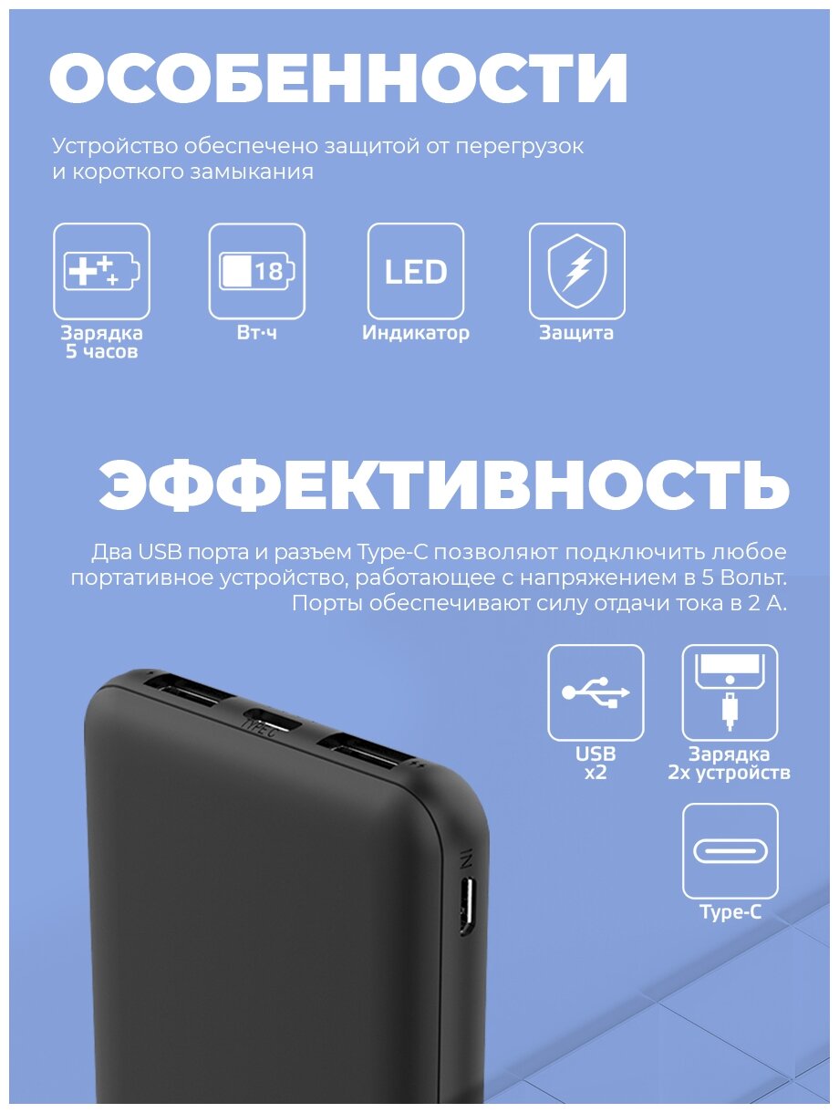 Внешний аккумулятор HARPER PB-5001 (5000 мАч, защита от короткого замыкания), черный