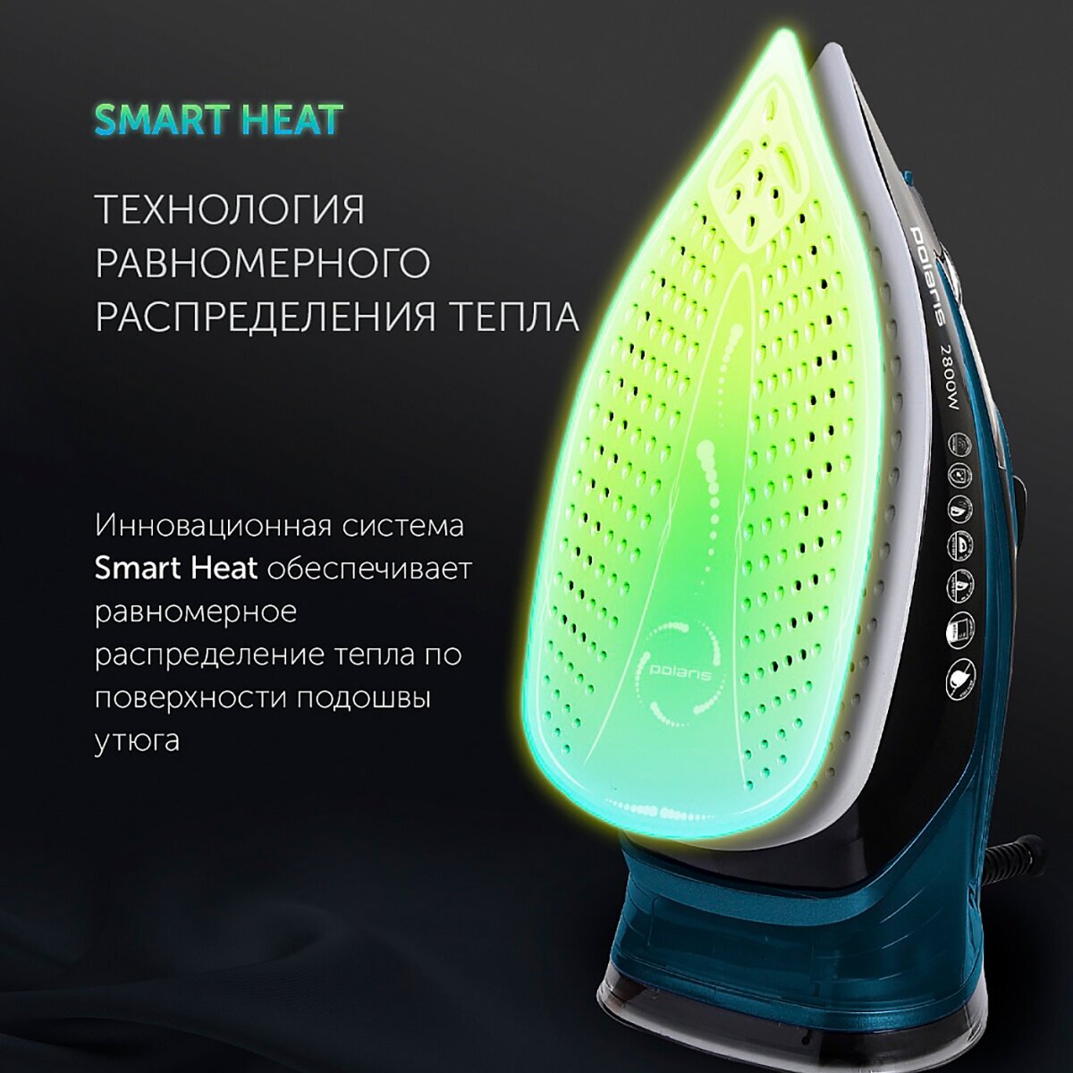 Утюг, черный бирюзовый POLARIS PIR 2821AK