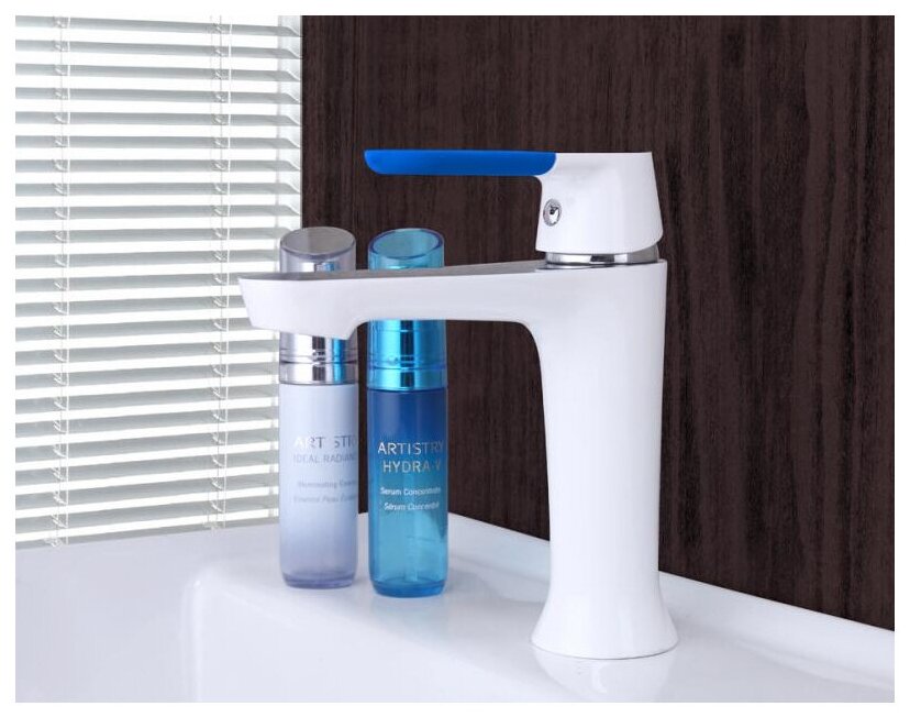 Смеситель для умывальника Frap F1034 с коротким изливом, белый/хром, цветные накладки на ручку