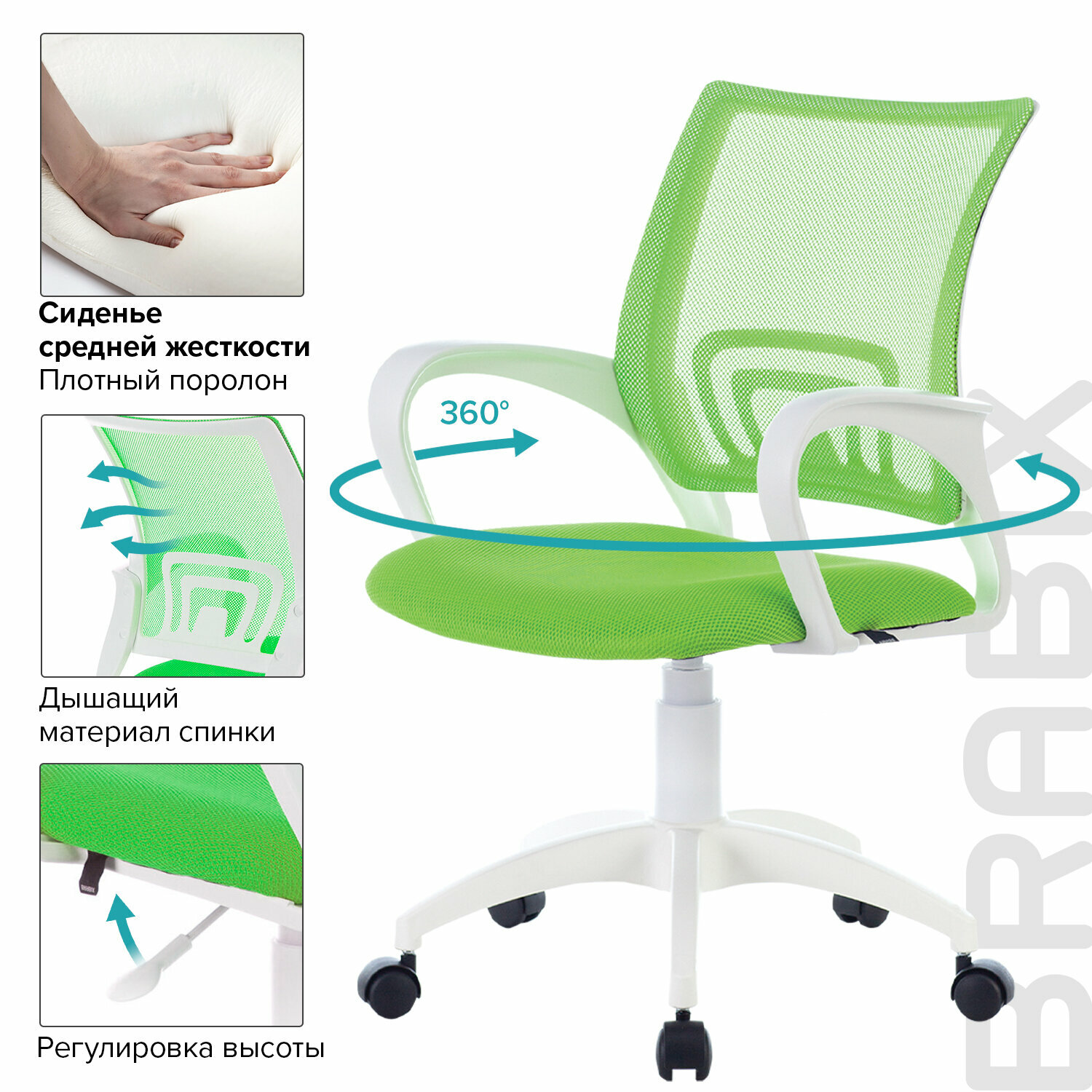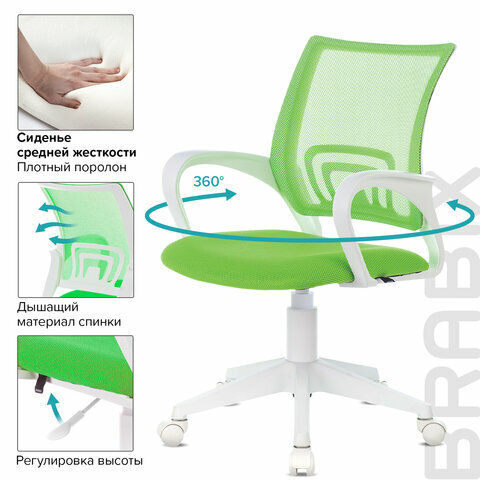 СохранитьКресло BRABIX «Fly MG-396W», с подлокотниками, пластик белый, сетка, салатовое, 532403 интересное: