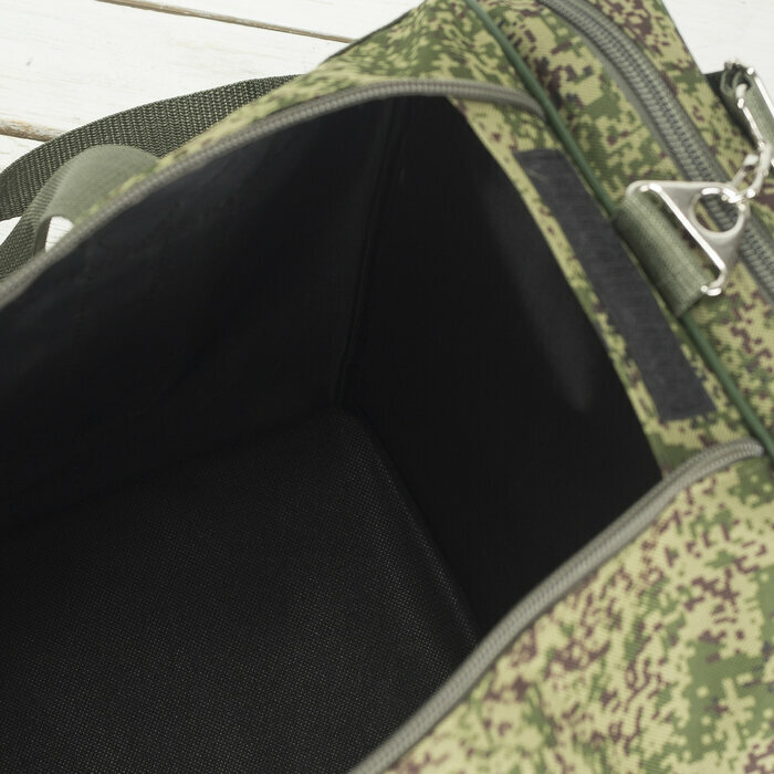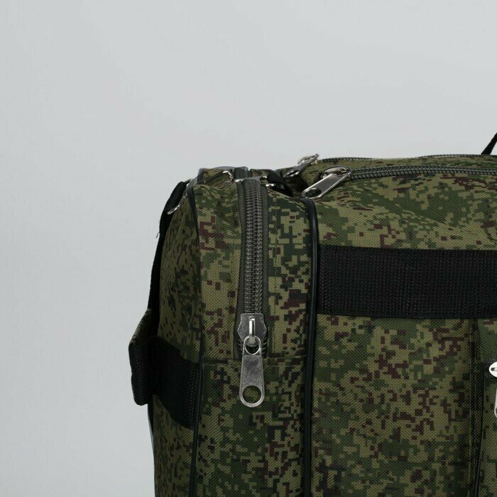 Зфтс Сумка дорожная на молнии, 3 наружных кармана, длинный ремень, цвет камуфляж