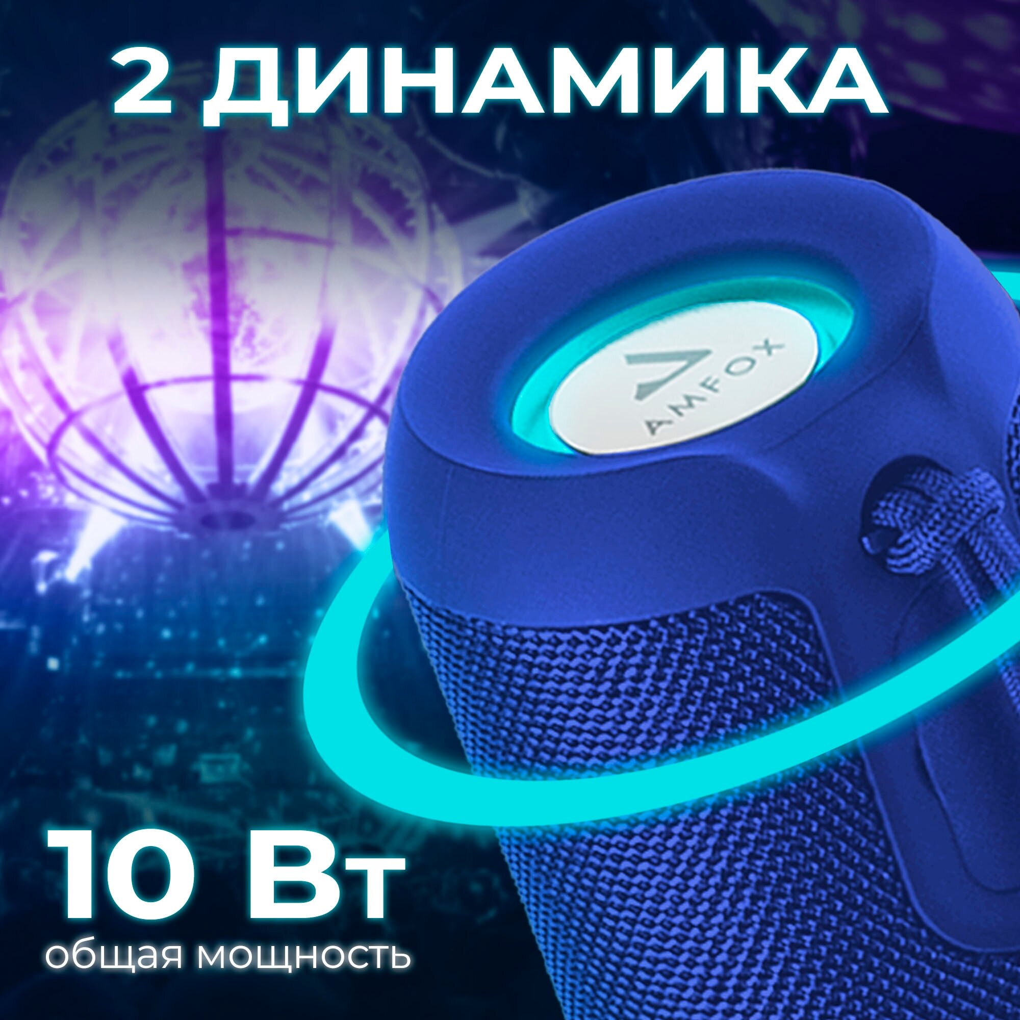 Влагозащитная портативная колонка bluetooth 5.0, AMFOX, ASP-777, 2 динамика по 5Вт, как jbl акустика с подсветкой, xiaomi, синяя