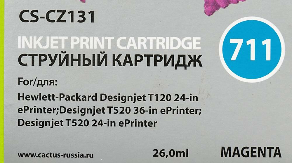 Картридж струйный Cactus CS-CZ131 №711 magenta ((26мл) для HP DJ T120/T520) (CS-CZ131)