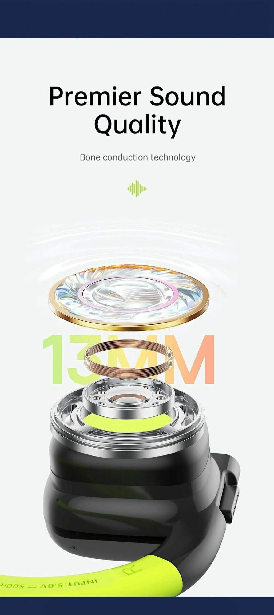 Наушники беспроводные, спортивные WiWU Marathon Pro с воздушной проводимостью - Зеленый