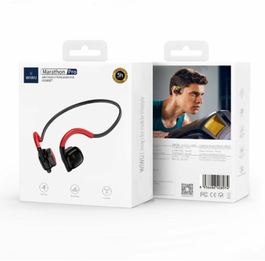 Наушники беспроводные, спортивные WiWU Marathon Pro с воздушной проводимостью - Красный