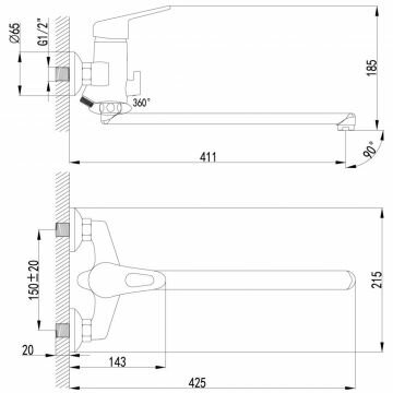 | Особенности | аэратор / держатель душевой лейки / поворотный излив |