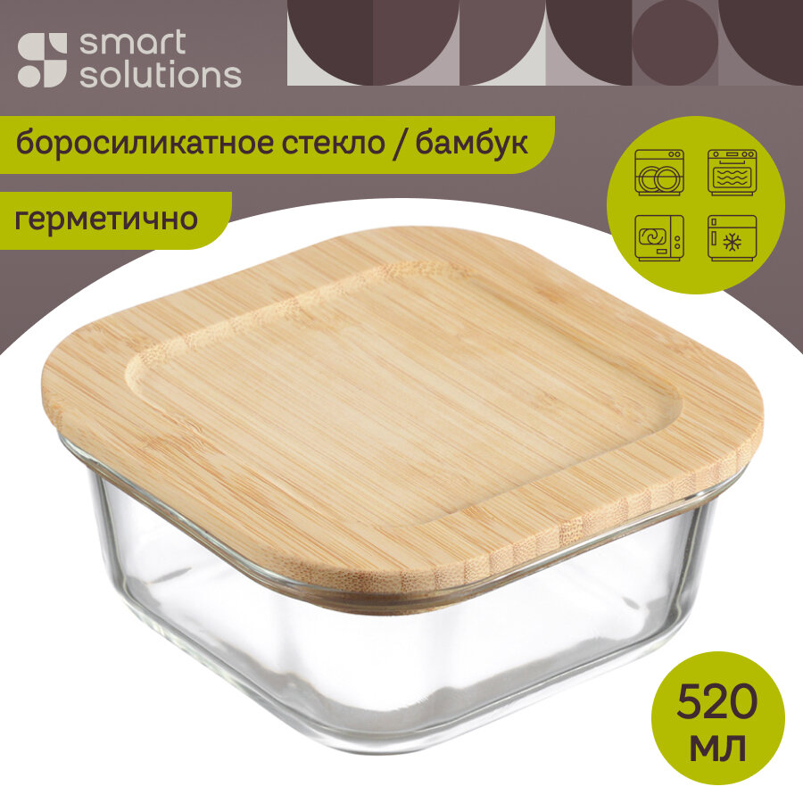 Купить Контейнер для запекания и хранения Smart Solutions с крышкой из бамбука, 520 мл