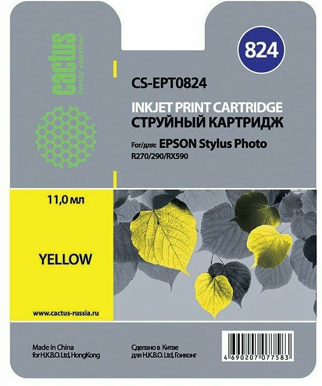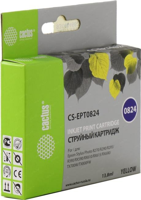 Купить Картридж струйный Cactus CS-EPT0824 T0824 желтый (13.8мл) для Epson Stylus Photo R270/290/RX590