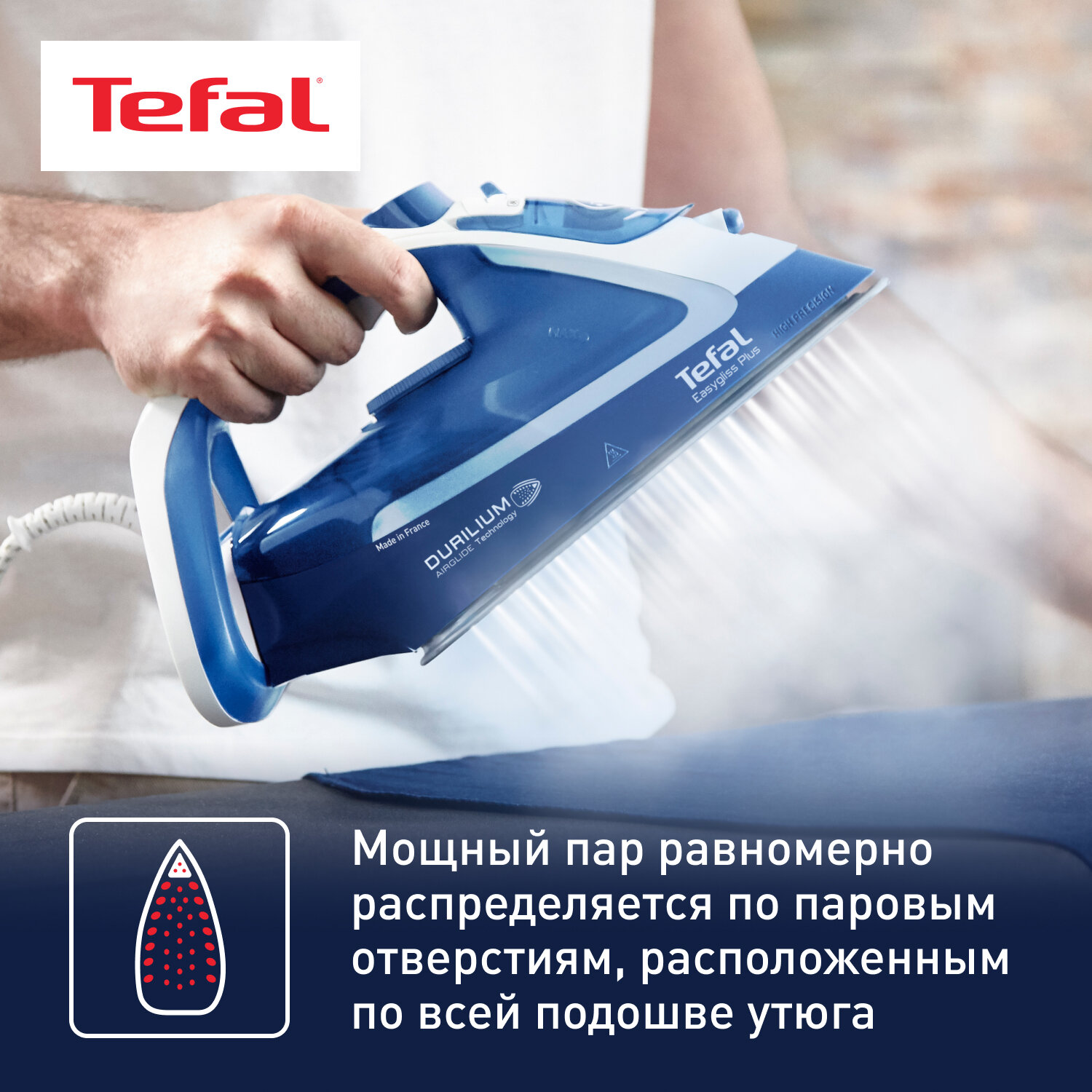 Паровой утюг Tefal Easygliss Plus FV5770E0 с вертикальным отпариванием, защитой от накипи, большим резервуаром для воды, 2700 Вт, Франция