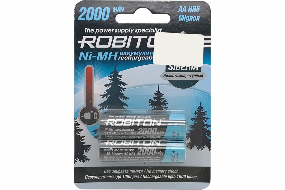 Ni-Mh аккумуляторы ROBITON SIBERIA 2000MHAA-2 BL-2 14875, 1.2В, 2000мАч, размер АА (HR6), металлогидридные, низкотемпературные -40ºС, 2шт в упаковке