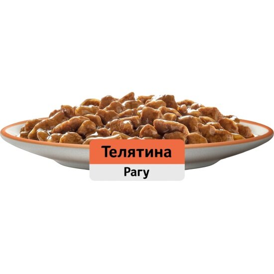 | Состав | мясо и субпродукты (в том числе телятина), продукты животного происхождения, пшеничная мука, загустители, аминокислоты (в том числе таурин), минеральные вещества, витамины, свекловичный жом, сахара, натуральные красители |
