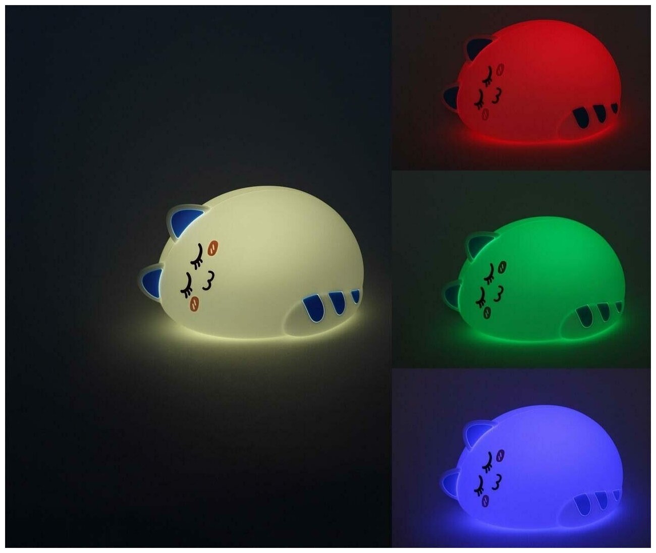 Ночник детский антистресс NLED-415-2W-BU ЭРА Кот, пульт управления, USB, смена цветов, диммер,сенсор