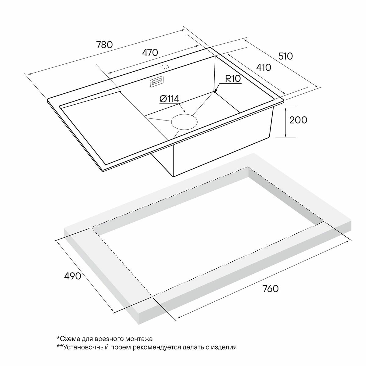 | Установка | врезная / накладная |