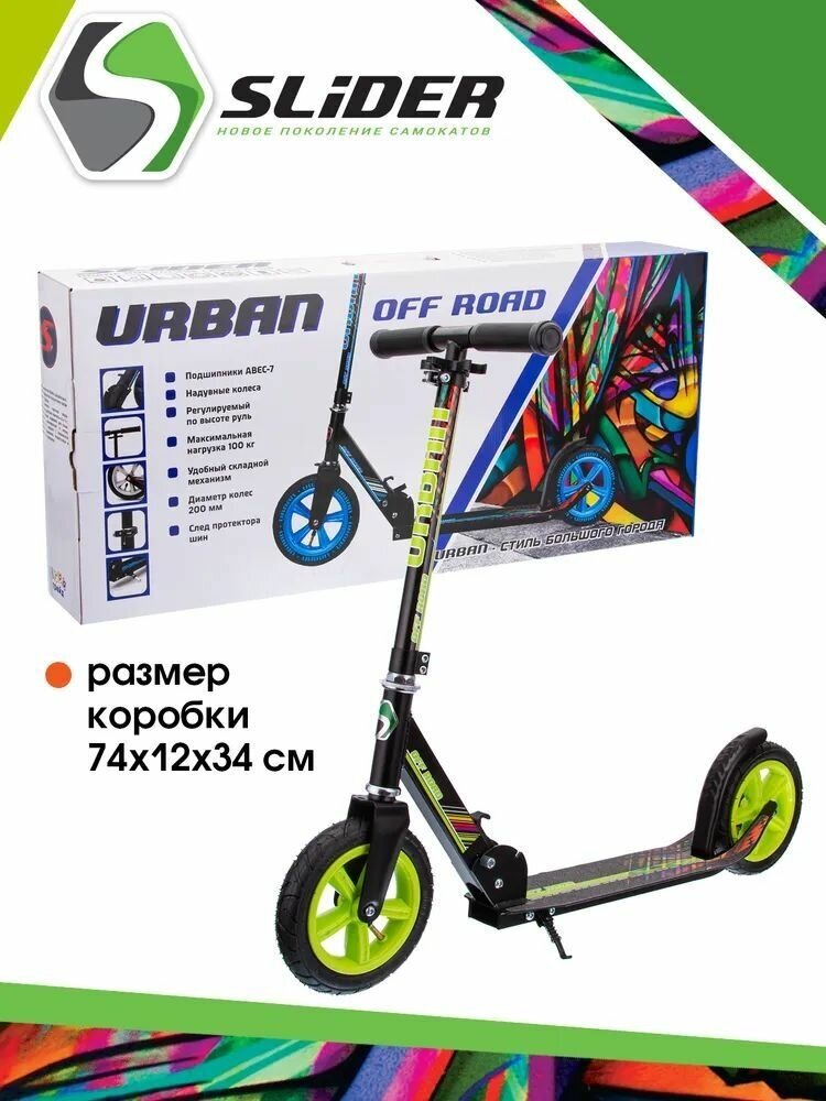 Самокат двухколесный, "Slider" для детей и подростков, колеса: надувные, d 200мм., руль 74-90 см. подшипники ABEC-7
