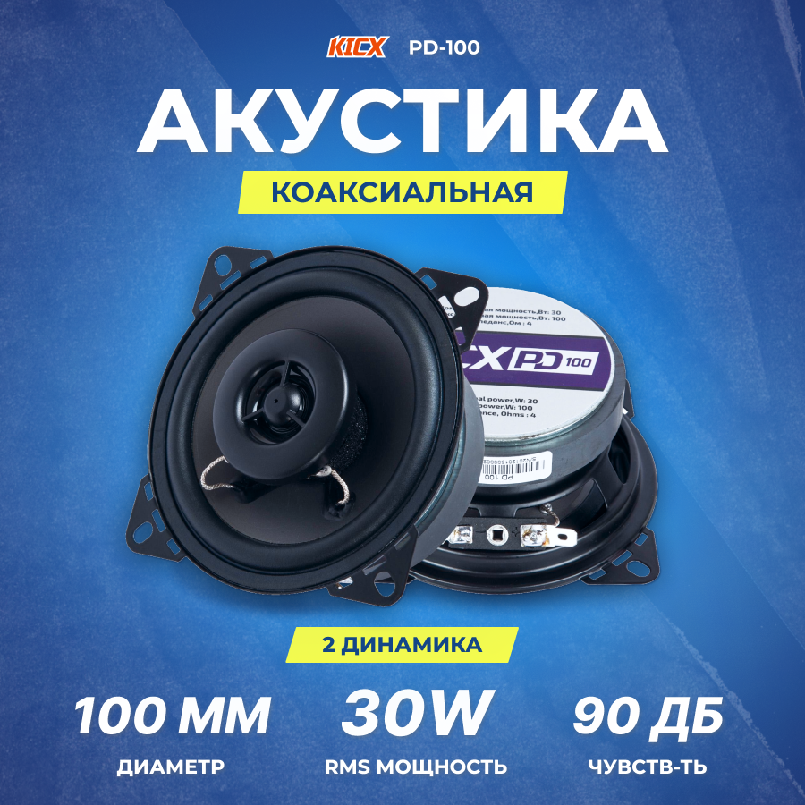 Колонки коаксиальные 4 (10см) 30Вт, KICX PD100 (1 шт.)