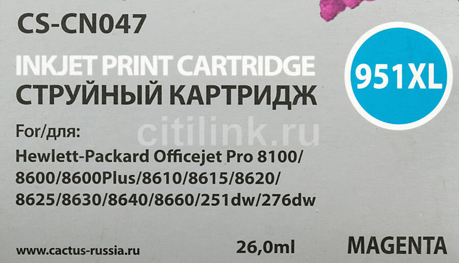 Картридж MAGENTA NO.951XL 26ML CS-CN047 CACTUS