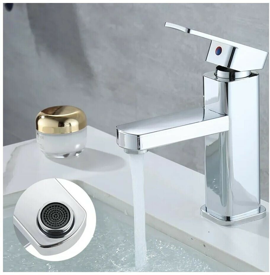 Cмеситель для раковины Haiba HB1002, монолитный излив с аэратором, хром, гайка.