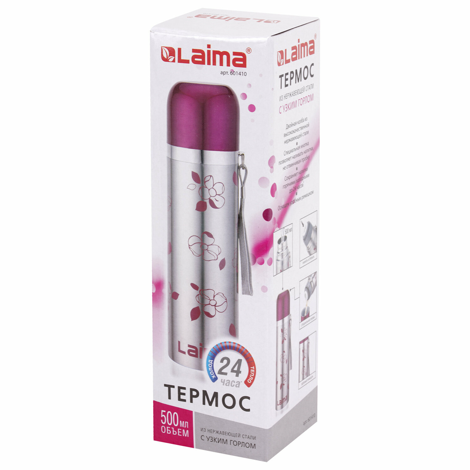 Термос Laima, классический, с узким горлом, 0.5 л, нержавеющая сталь, с рисунком