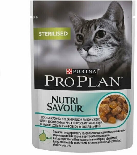 Влажный консервированный корм Purina ProPlan для стерилизованных кошек и кастрированных котов, (океаническая рыба в желе), 3 шт по 85 гр
