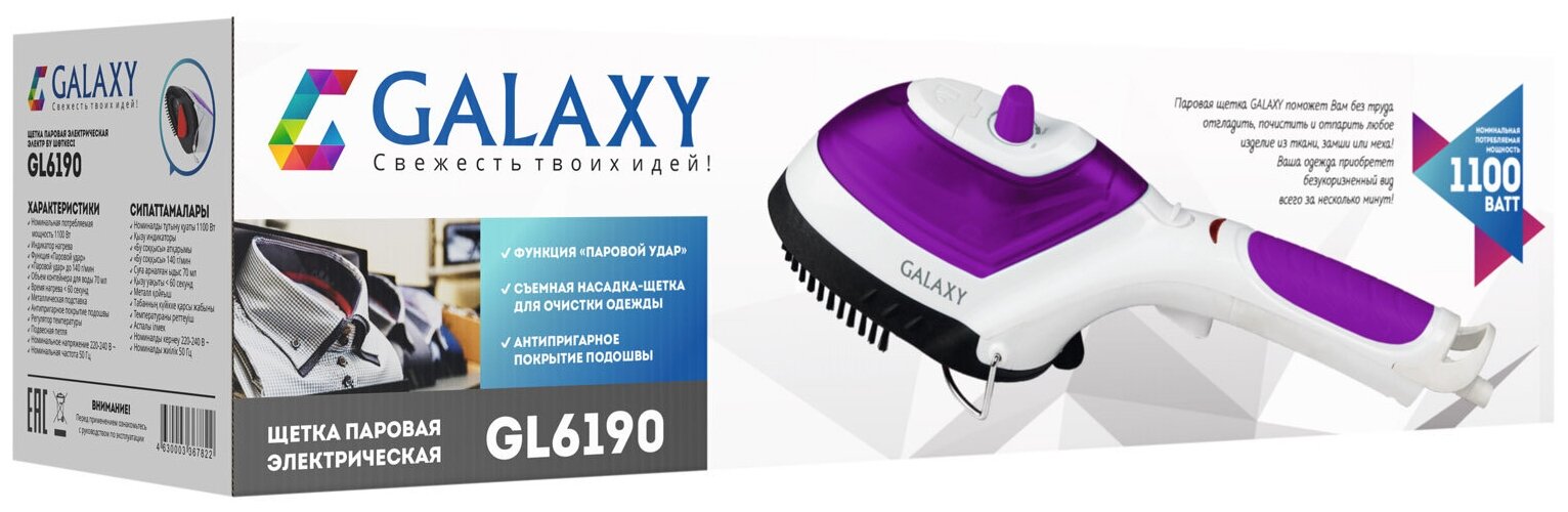 Отпариватели Galaxy Отпариватель-щётка Galaxy GL 6190, ручной, 1100 Вт, 70 мл, 25 г/мин, фиолетовый