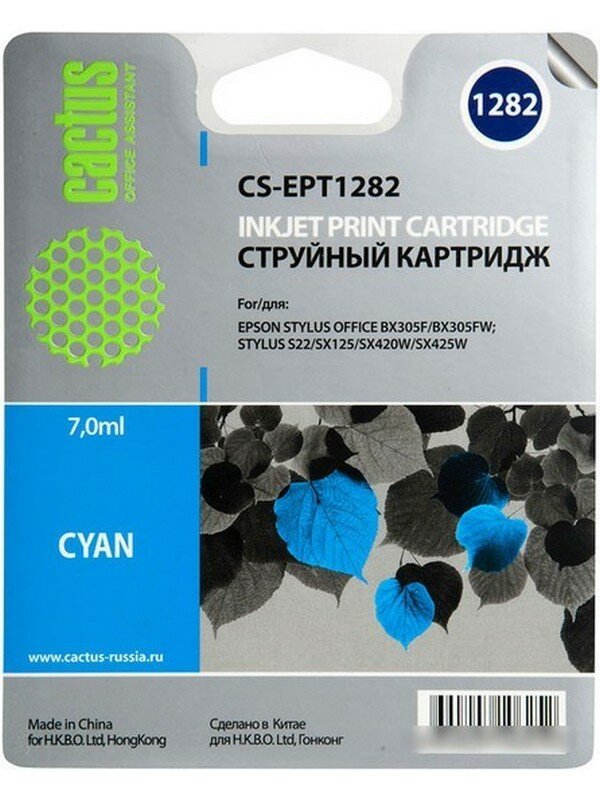 Картридж струйный Cactus CS-EPT1282 T1282 голубой (7мл) для Epson Stylus S22/S125/SX420/ SX425/Office BX305