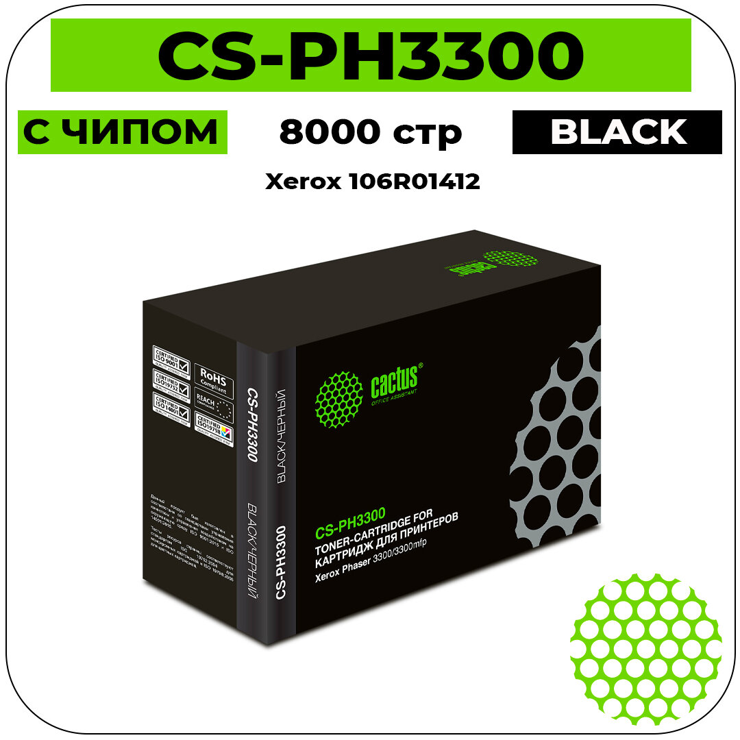 Картридж Cactus CS-PH3300, 106R01412, черный / CS-PH3300