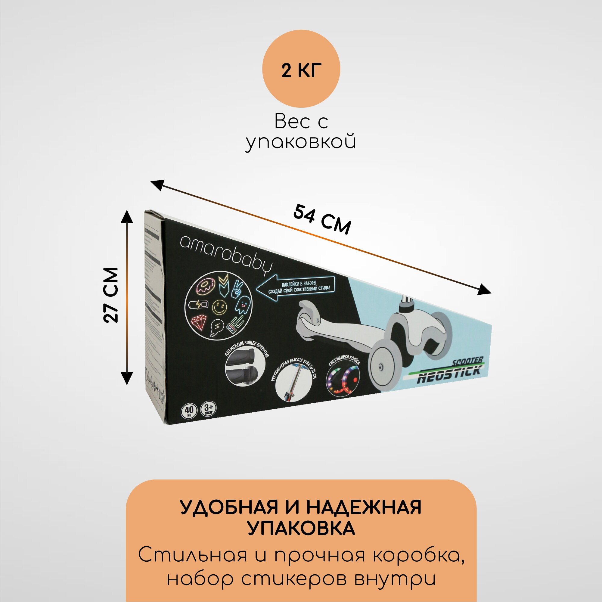 Самокат (кикборд) трехколесный Amarobaby Neostick оранжевый/Хит года /Подарок на новый год