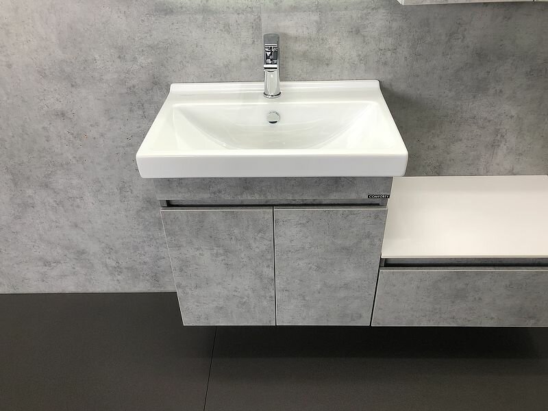 Тумба-умывальник напольная Comforty Осло-70НД бетон светлый с раковиной COMO 70