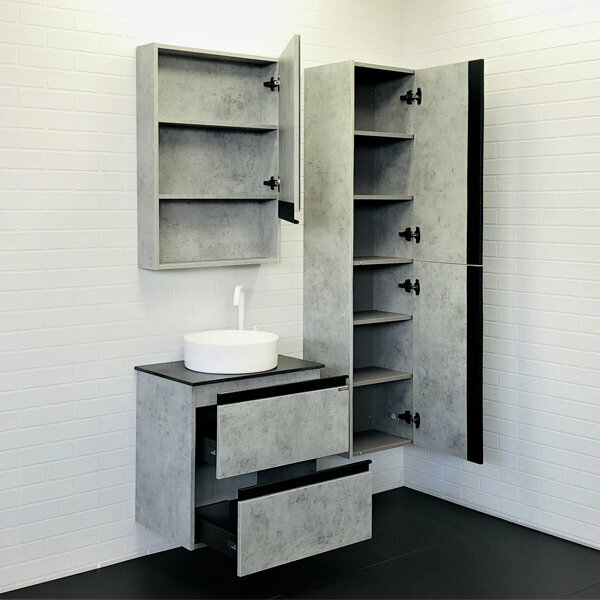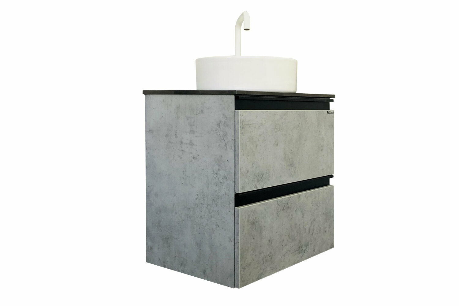 COMFORTY. Тумба-умывальник "Эдинбург-60-2" бетон светлый с черной столешницей с отверстием под смеситель, с раковиной COMFORTY 9111