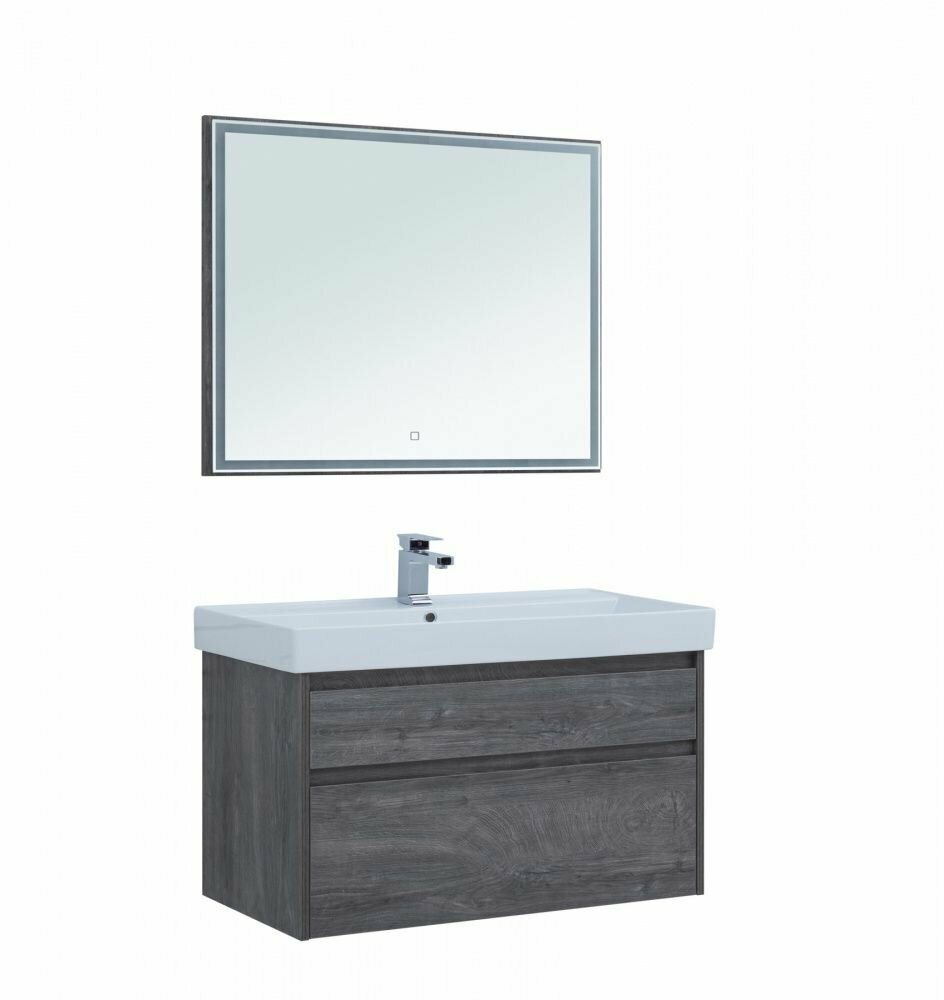 Тумба под раковину Aquanet Nova Lite 100 два ящика, дуб рошелье/серая (242582)