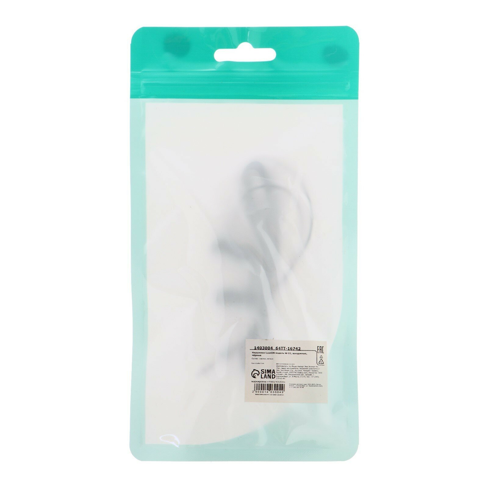 Наушники LuazON "Брилиант" W-02, вакуумные, чёрные, Luazon Home