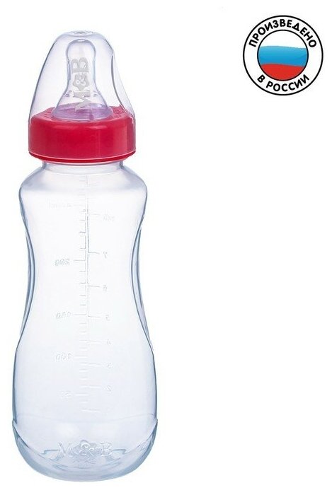 Mum&Baby Бутылочка для кормления, классическое горло, приталенная, 250 мл., от 3 мес., цвет красный