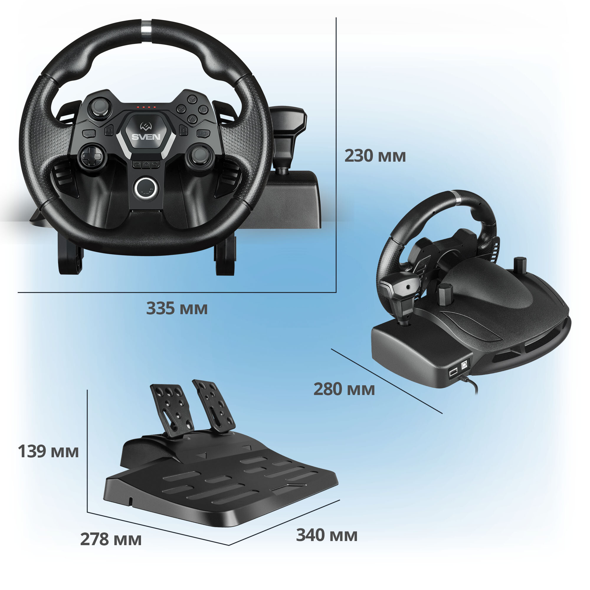 Руль игровой Sven GC-W900 Vibration рулевое колесо педали рычаг Кпп 12кн. PS3/PS4/Xbox One/360/X