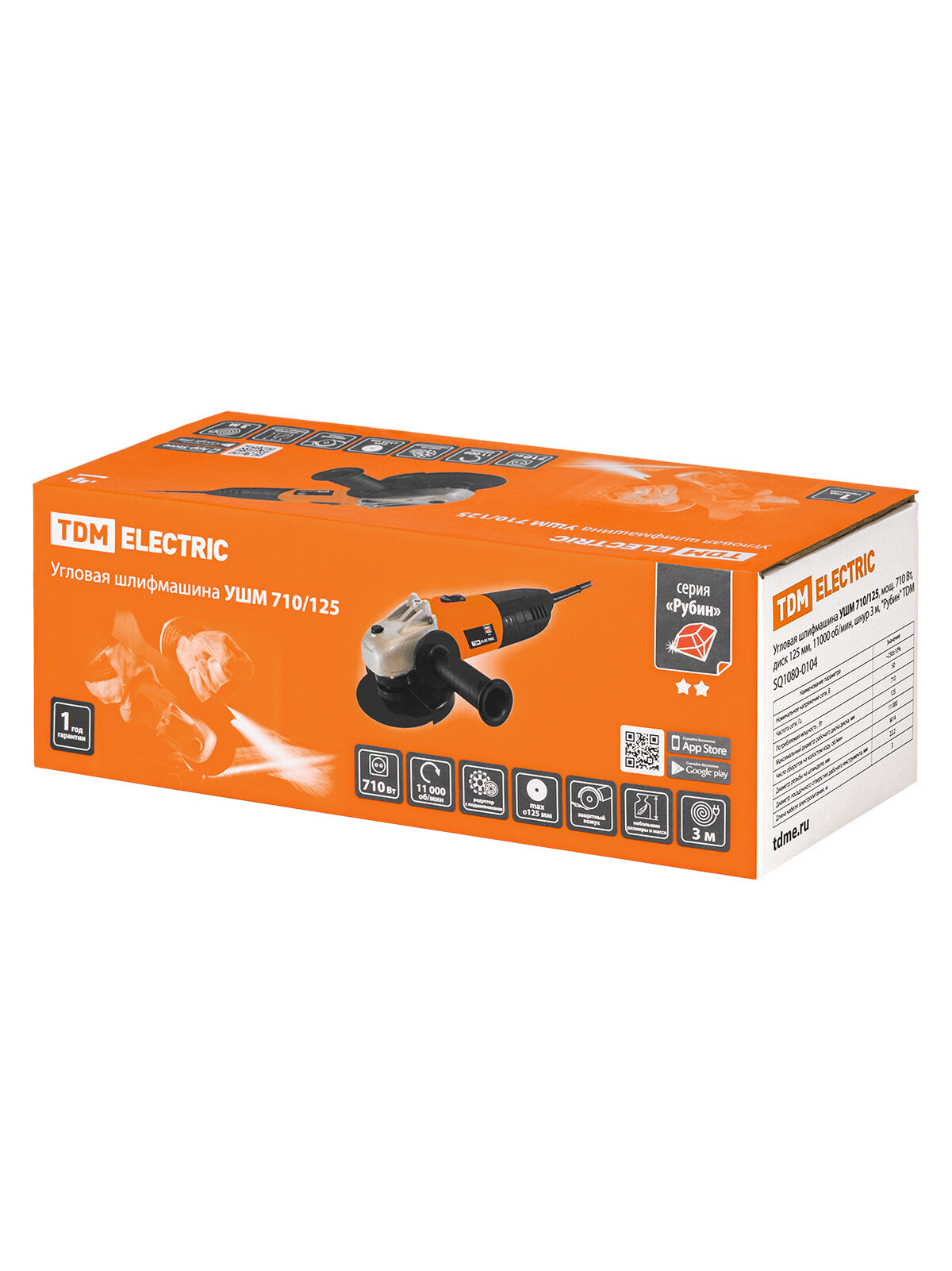 Угловая шлифмашина УШМ 710125, 710 Вт, диск 125 мм, 11000 обмин, шнур 3 м, Рубин TDM SQ1080-0104 (1 шт.)