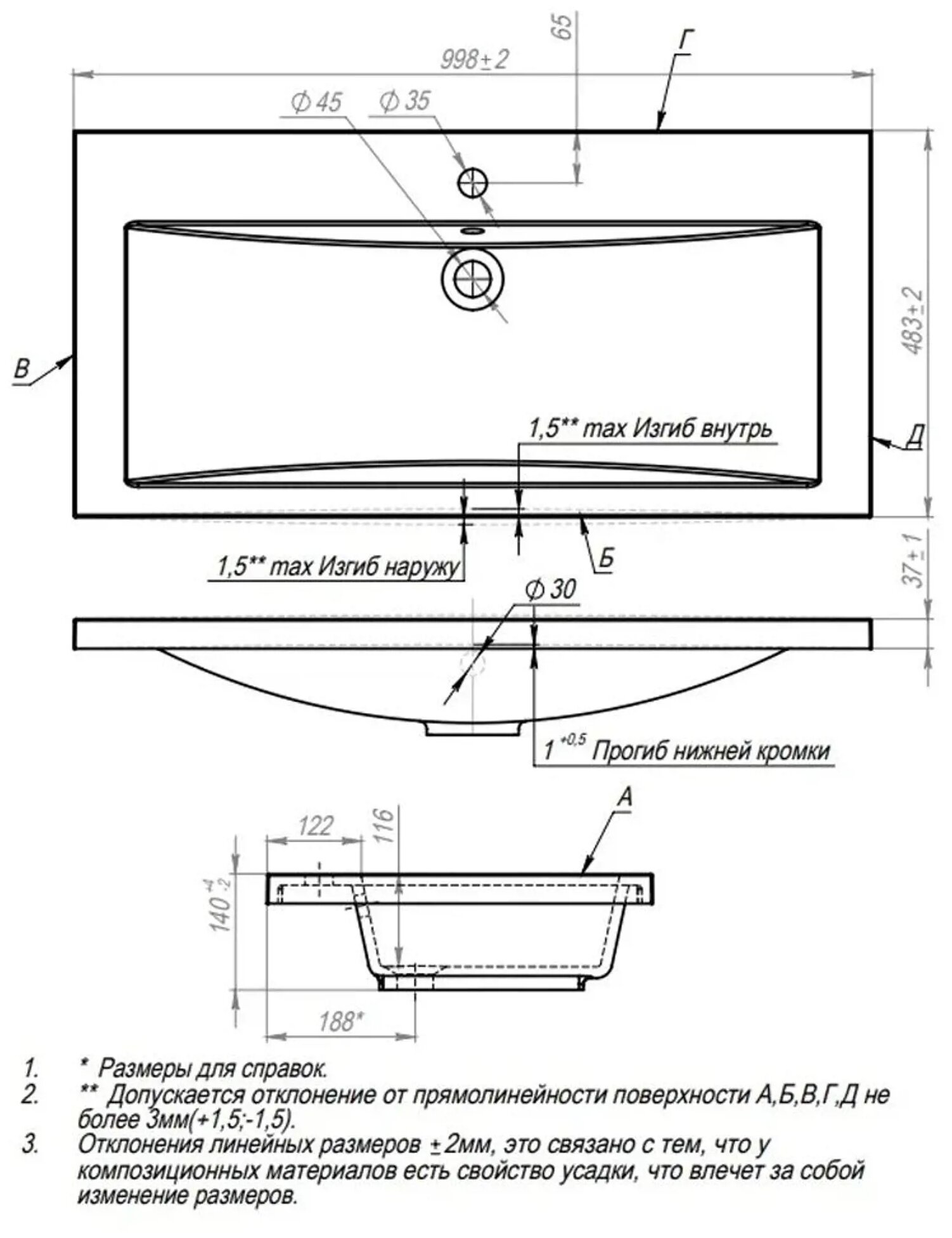 | Число размеченных отверстий под смеситель | отсутствуют |