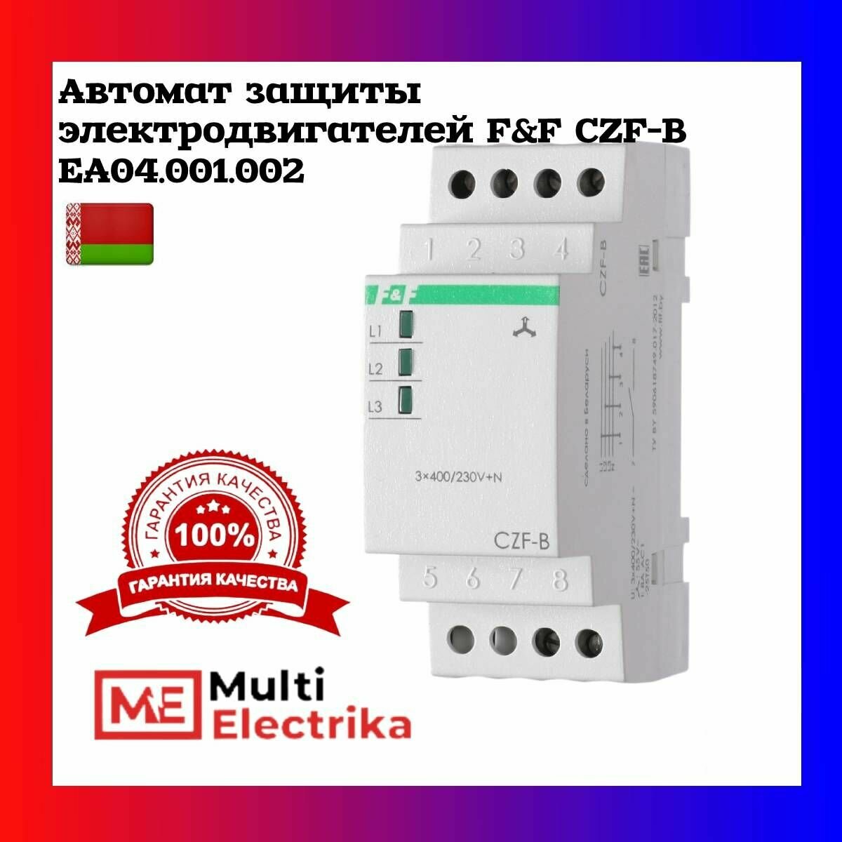 Реле контроля фаз Czf-b (3х400/230+N 8А 1перекл. IP20 монтаж на DIN-рейке) F&F EA04.001.002 EA04.001