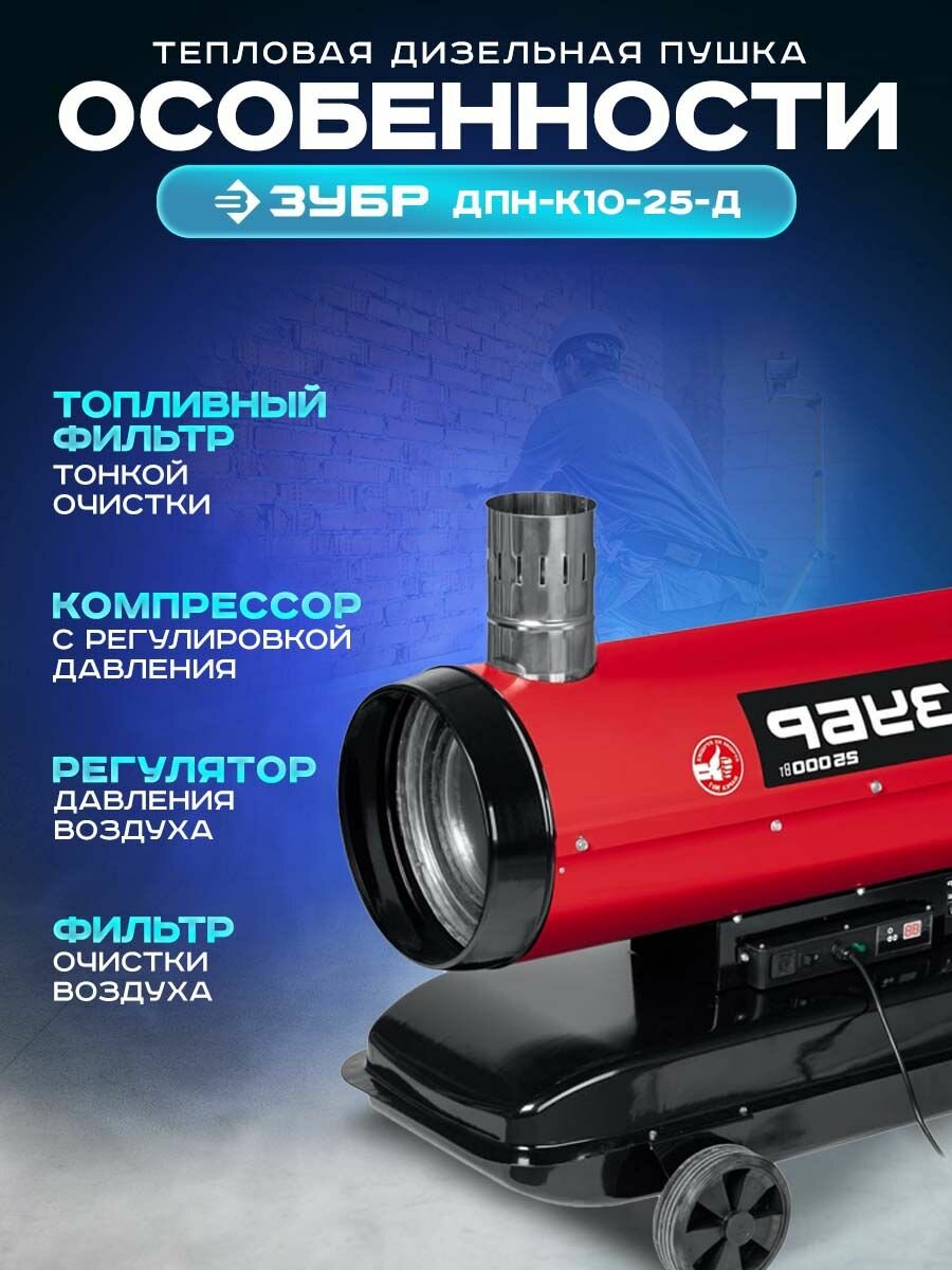 Тепловая пушка дизельная Зубр ДПН-К10-25-Д, 25 кВт