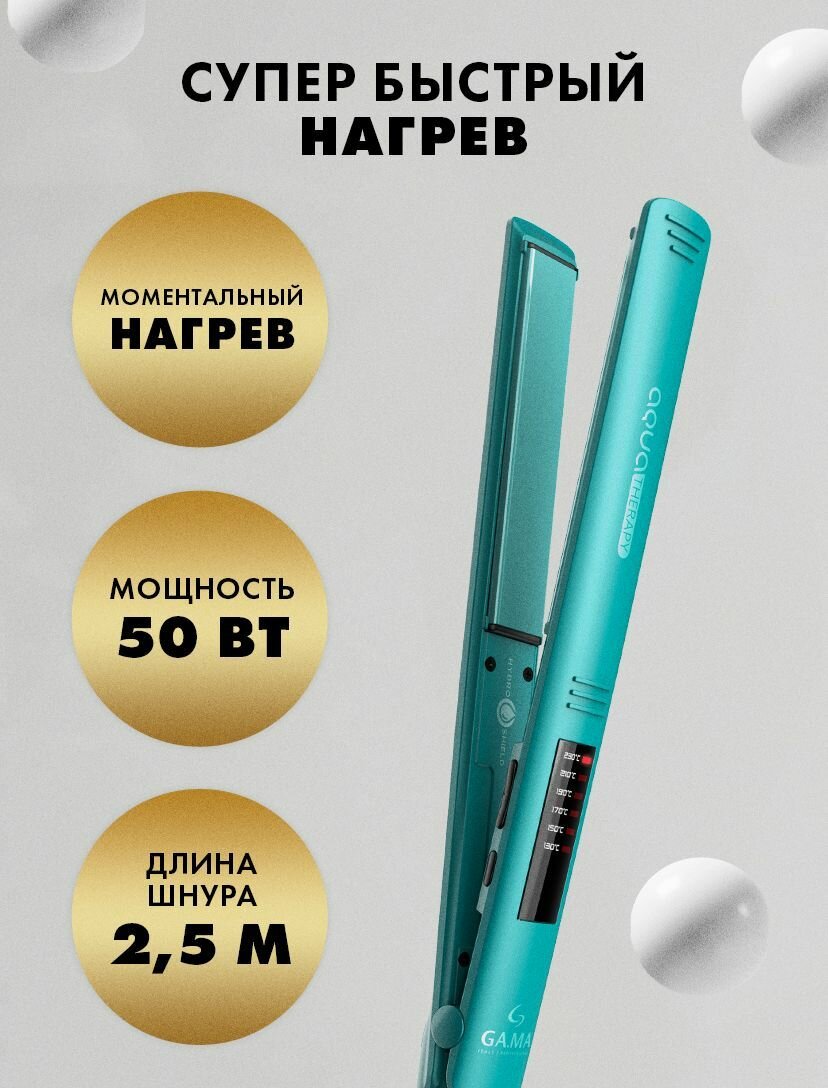 Выпрямитель для волос профессиональный / Cтайлер для волос / Утюжок для волос / Плойка для завивки волос GA.MA ELEGANCE LED AQUA THERAPY