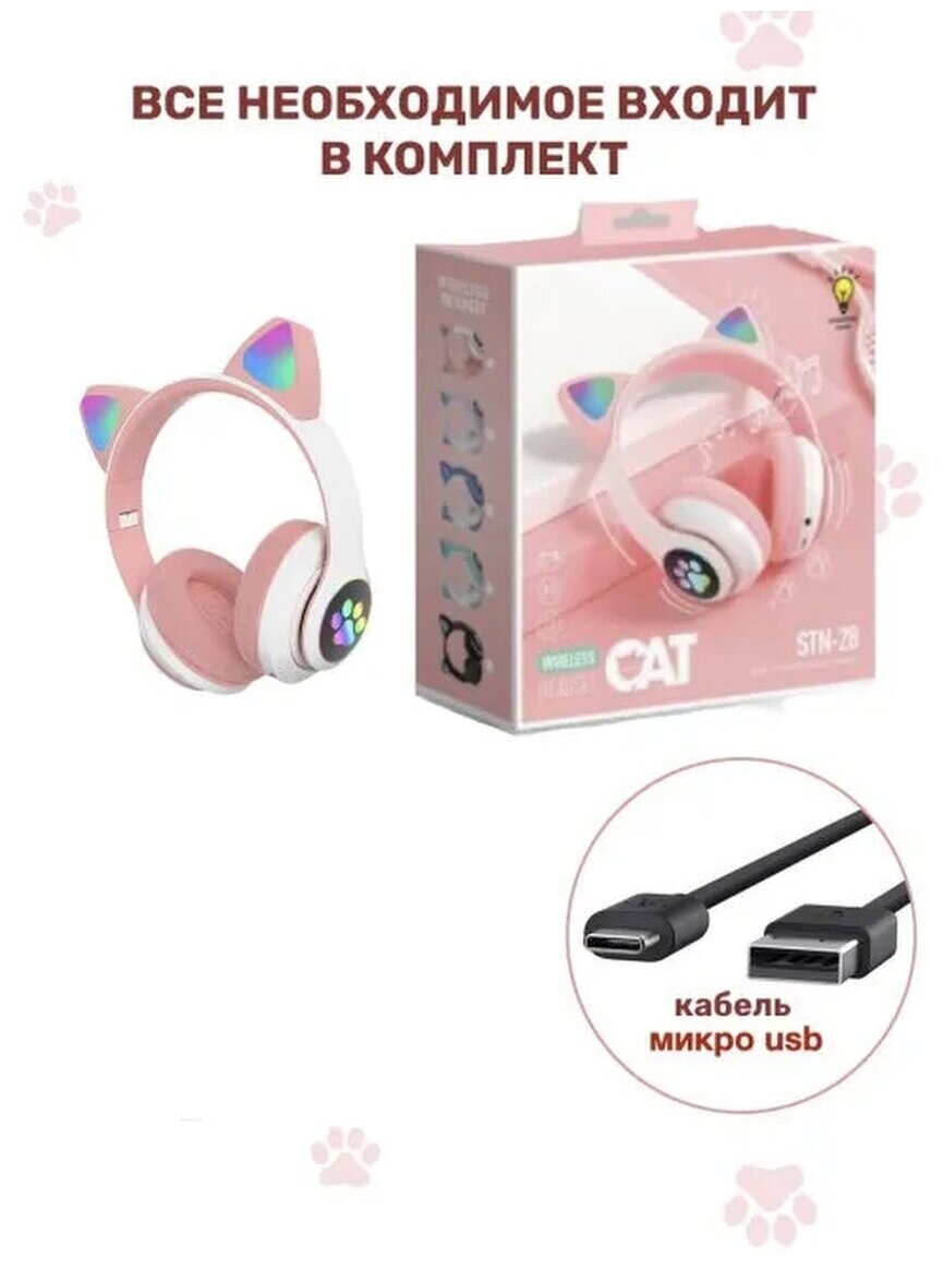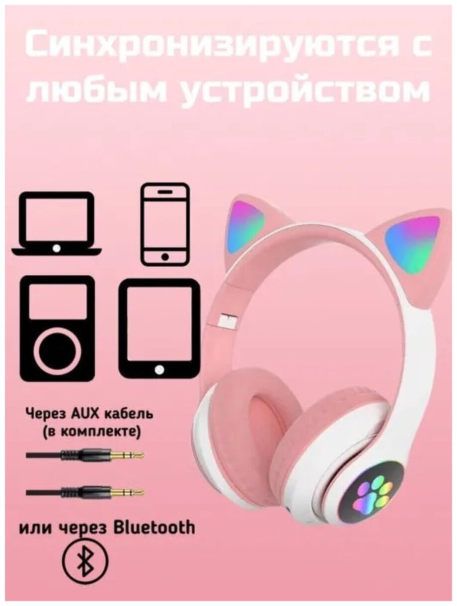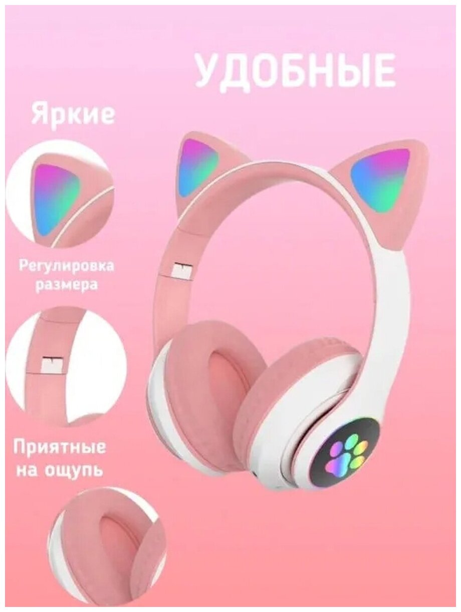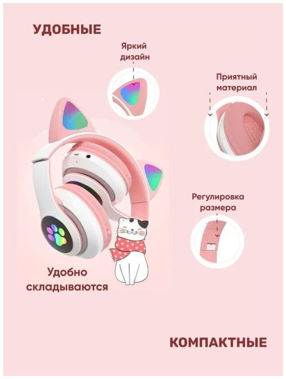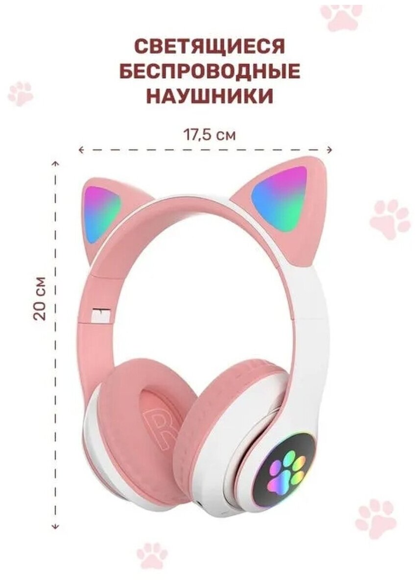 Беспроводные наушники Bluetooth со светящимися кошачьими ушами AKS-28 / розовые интересное: