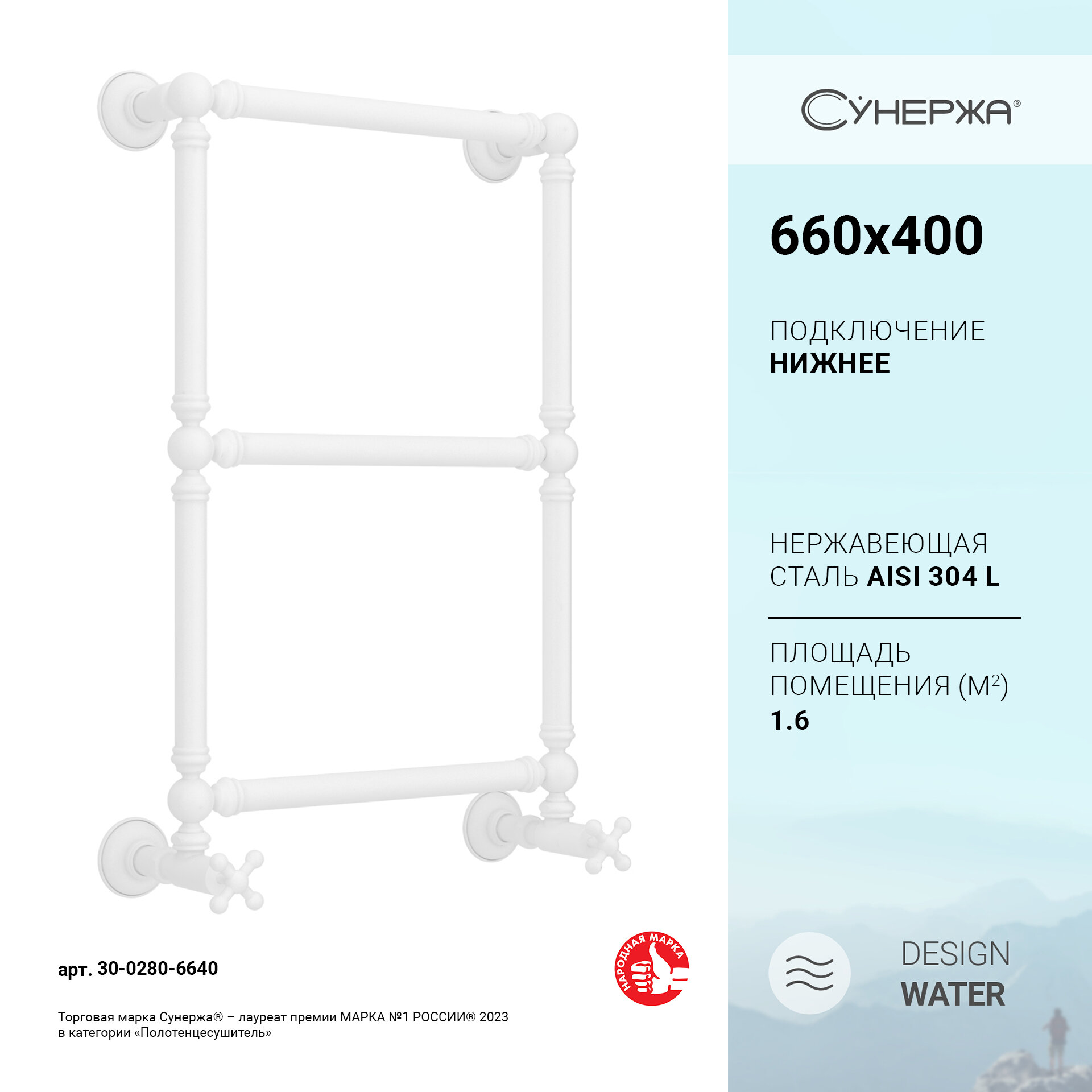 Купить Полотенцесушитель водяной Сунержа Ренессанс 1304 660х400 Матовый белый