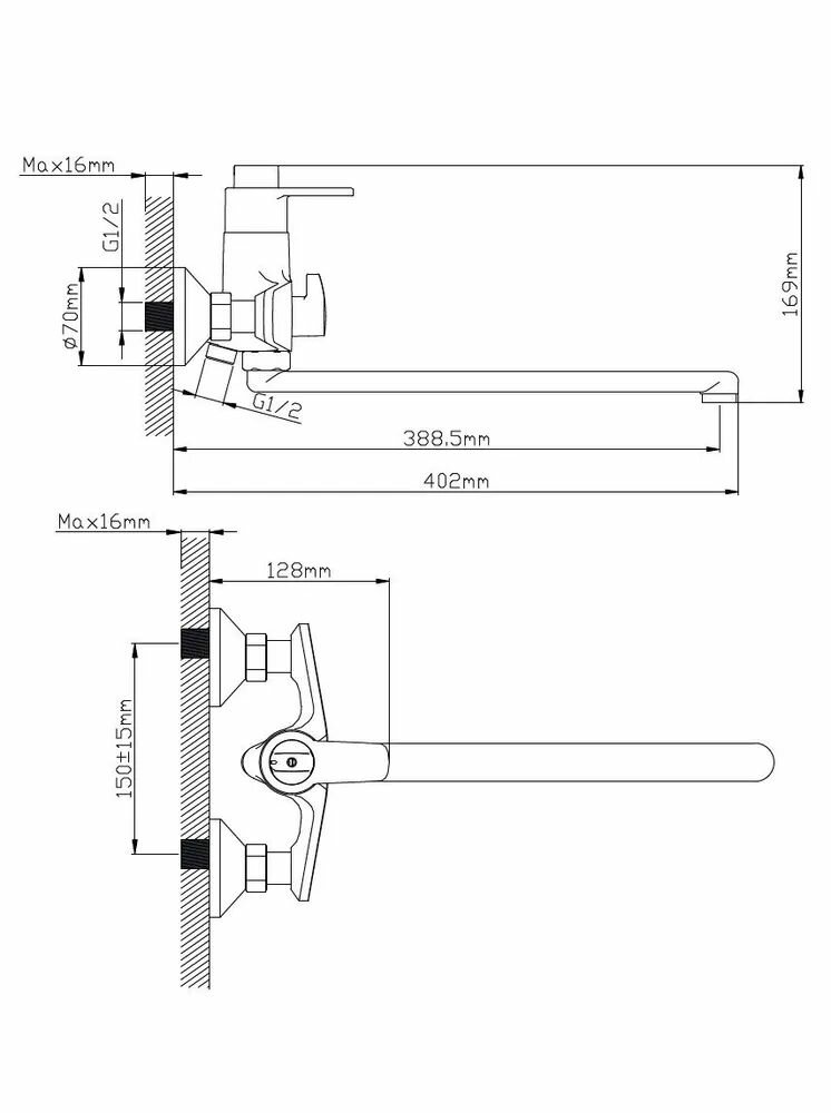 | Комплектация | корпус смесителя / излив плоский на гайке 3/4" / комплект крепежа (два эксцентрика / два конусных отражателя / две резиновые прокладки 3/4") / душевой шланг в металлической оплётке 1/2"х1/2" длиной 150 см / душевая пластиковая лейка один режим струи / держатель лейки настенный с регулируемым углом наклона / паспорт изделия |