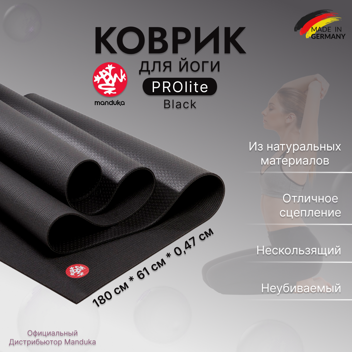 Купить Коврик для фитнеса и йоги из ПВХ Manduka PROlite 180*61*0,47 см - Black