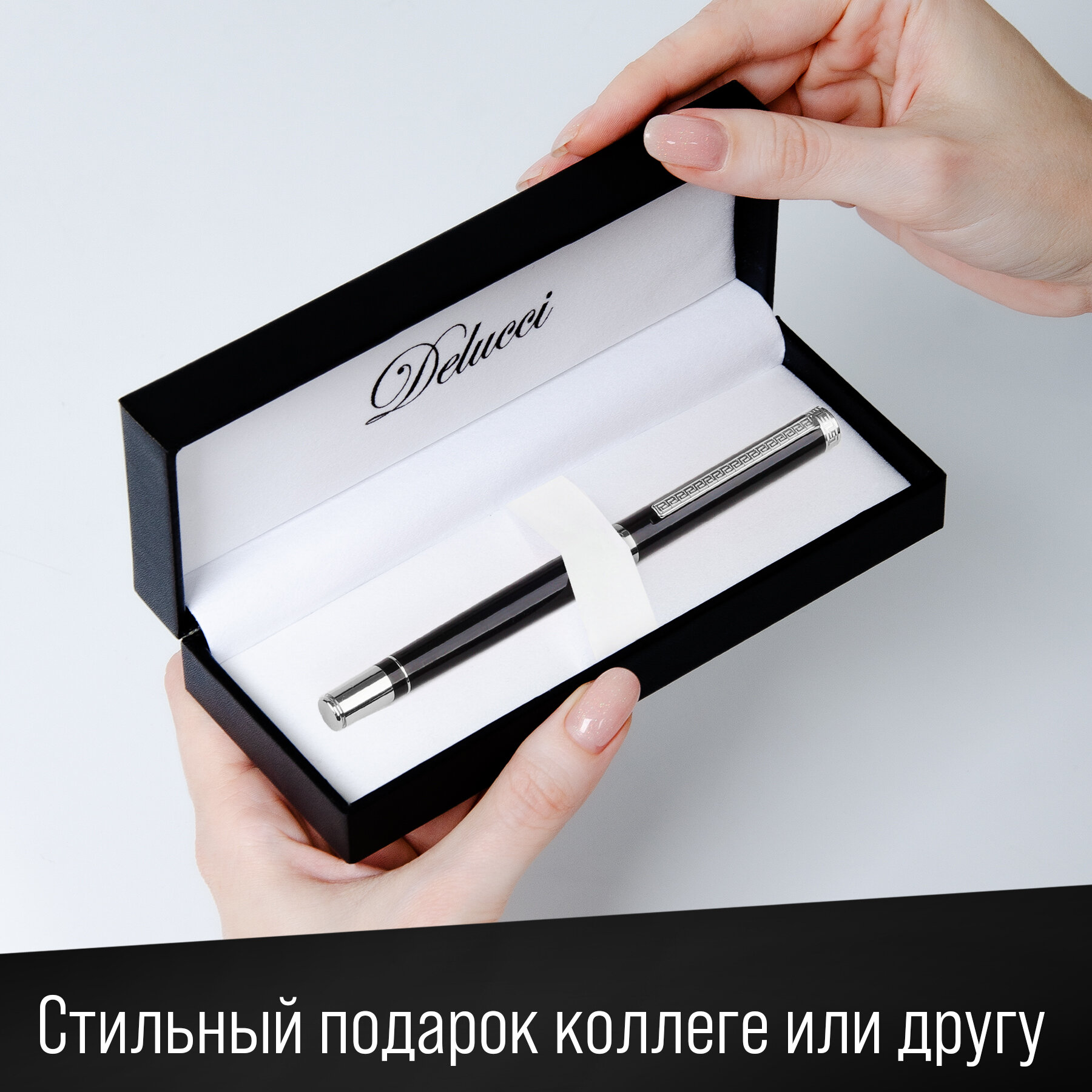 Ручка-роллер Delucci "Classico" черная, 0.6мм, цвет корпуса - черный/хром, подарочная упаковка