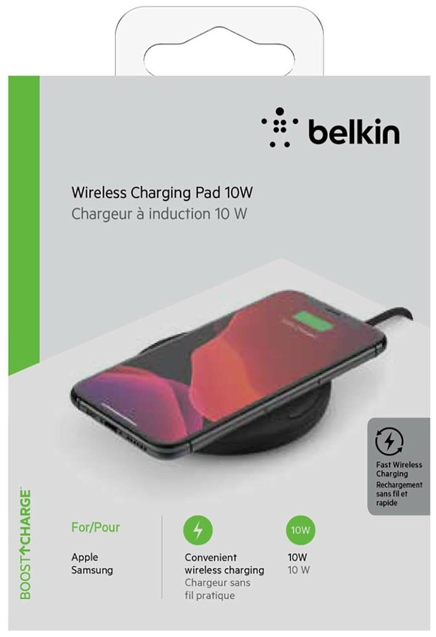 | Подробная комплектация | Беспроводное зарядное устройство Belkin 10 Вт, Кабель micro USB, адаптер питания |