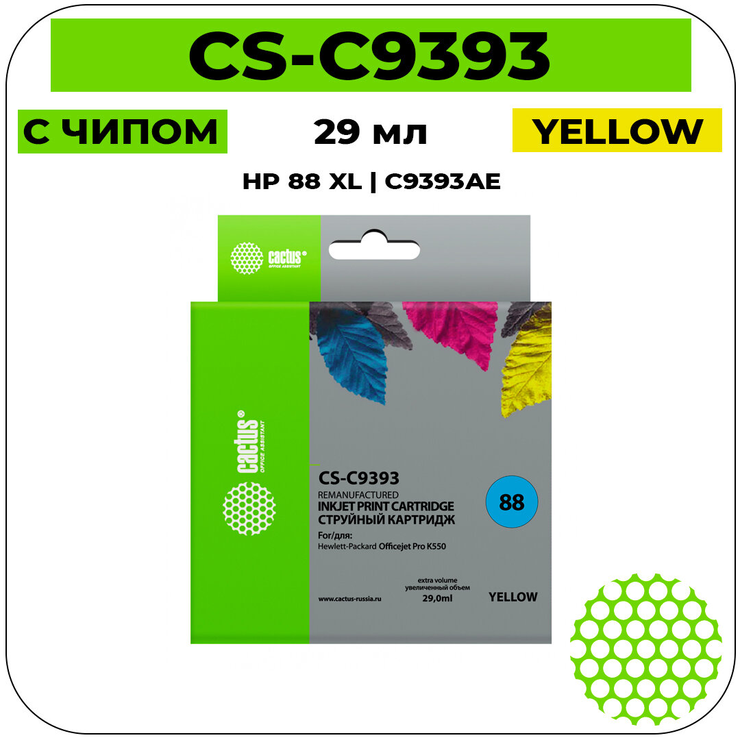 Картридж струйный Cactus CS-C9393 88 желтый (29мл) для HP DJ Pro K550 CS-C9393 .