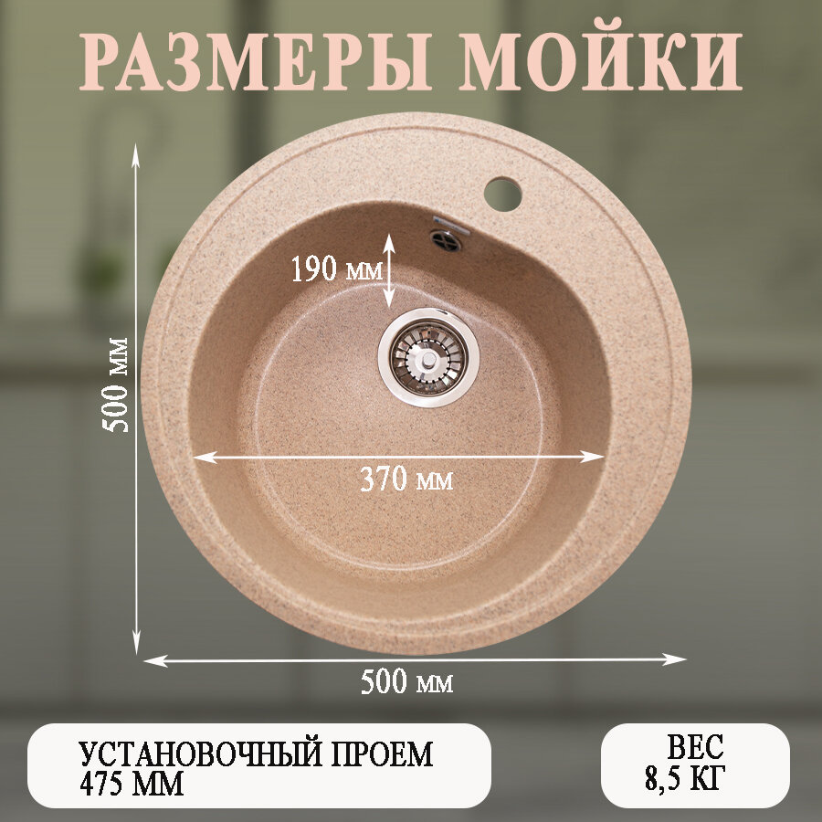 Мойка для кухни мраморная GranAlliance круглая D-500 песочная матовая без сифона интересное: