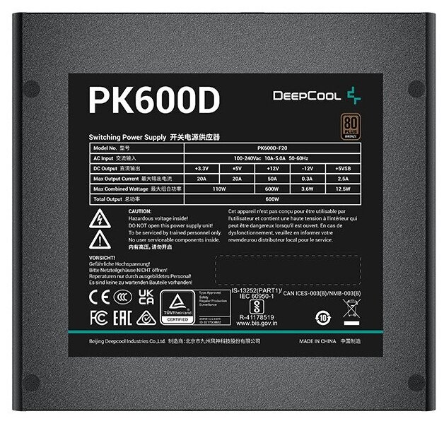 Блок питания Deepcool ATX 600W PK600D 80+ bronze (R-PK600D-FA0B-EU)