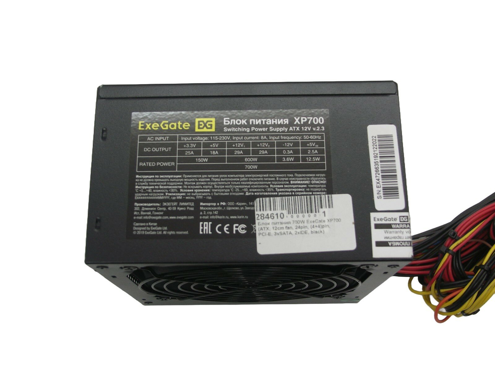 Ниже Вы можете прочитать отзывы на Блок питания 700W ExeGate XP700 (ATX, 12cm fan, 24pin, (4+4)pin, PCI-E, 3xSATA, 2xIDE, black), ознакомится с подробными характеристиками, посмотреть интересные обзоры и фотографии на Блок питания 700W ExeGate XP700 (ATX, 12cm fan, 24pin, (4+4)pin, PCI-E, 3xSATA, 2xIDE, black).