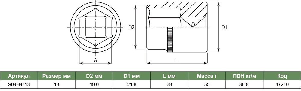 Головка торцевая 47210 1/2DR, 13 мм