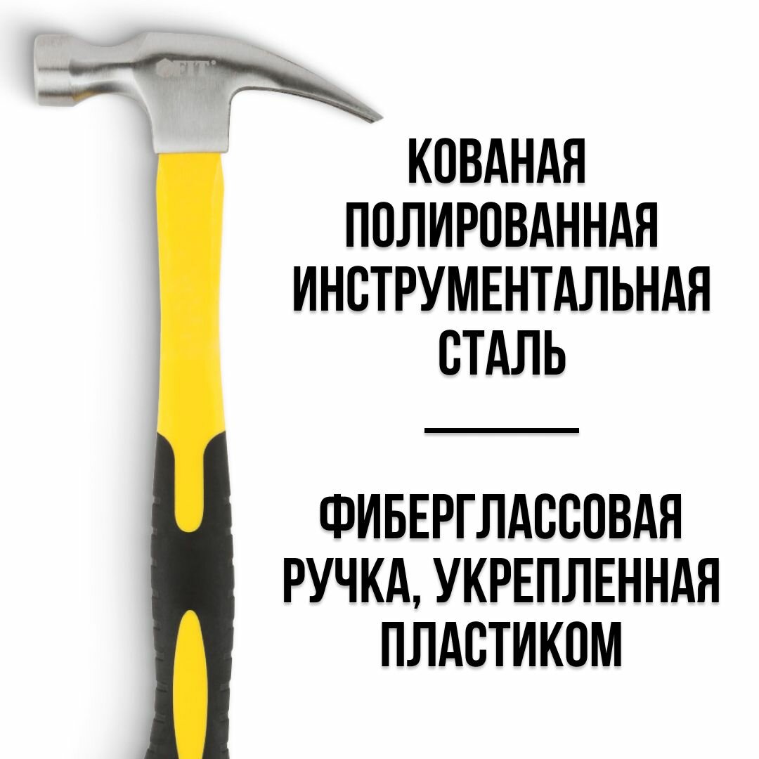 Молоток-гвоздодер, фиберглассовая усиленная ручка, антивибрационные накладки, Профи 30 мм, 450 гр. Fit